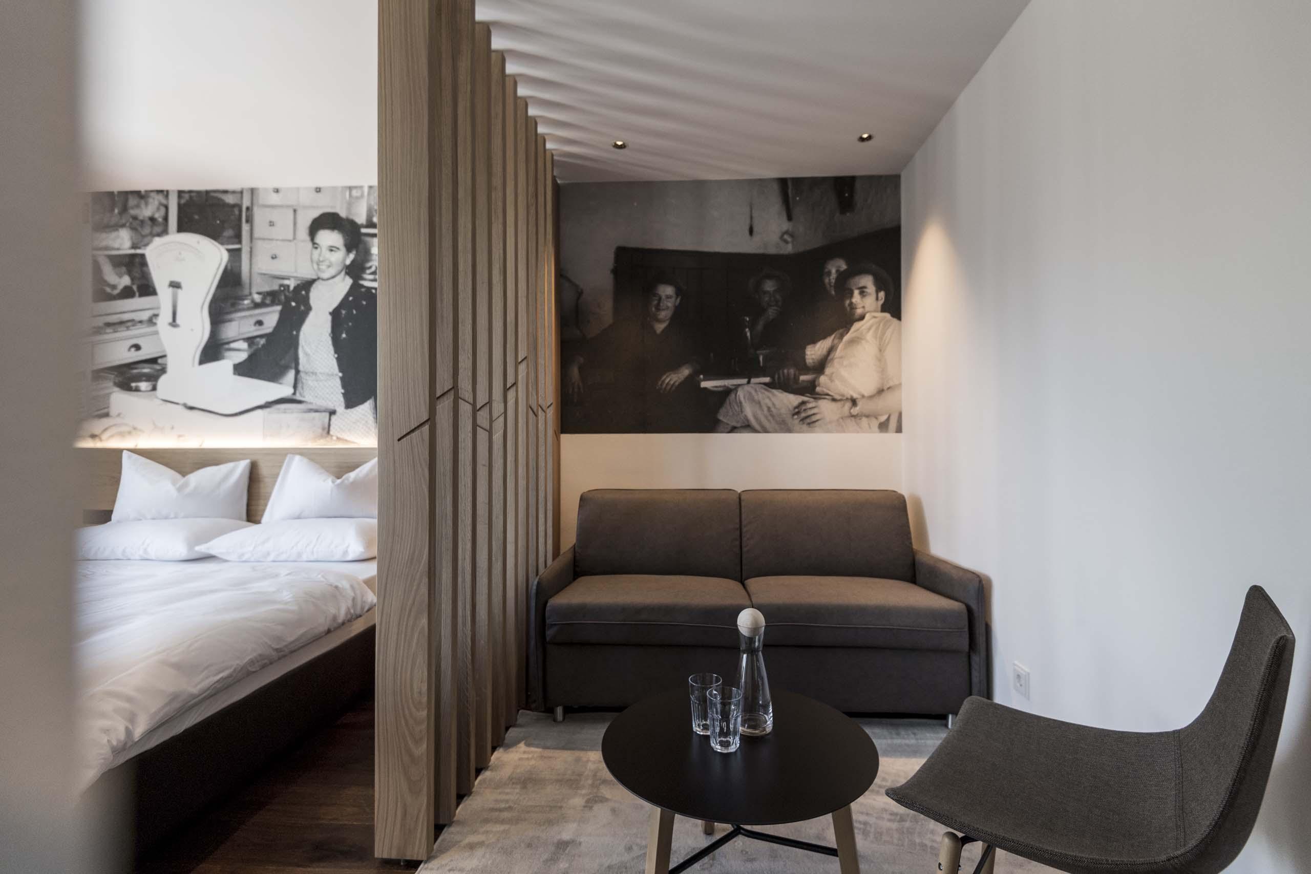 La Panorama Junior Suite, ampia e climatizzata, si trova al 1° piano del nuovo edificio. Grazie al balcone alla francese con una finestra di 3 metri esposta a sud, potrete godere al vostro risveglio della vista su Merano, il primo highlight della giornata. A rendere la camera ancora più accogliente sono il design moderno e i materiali naturali.